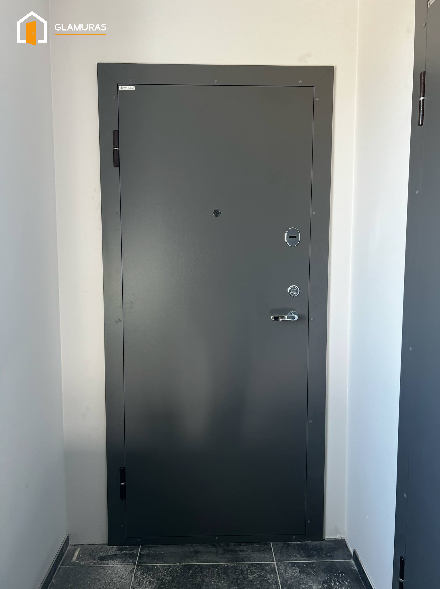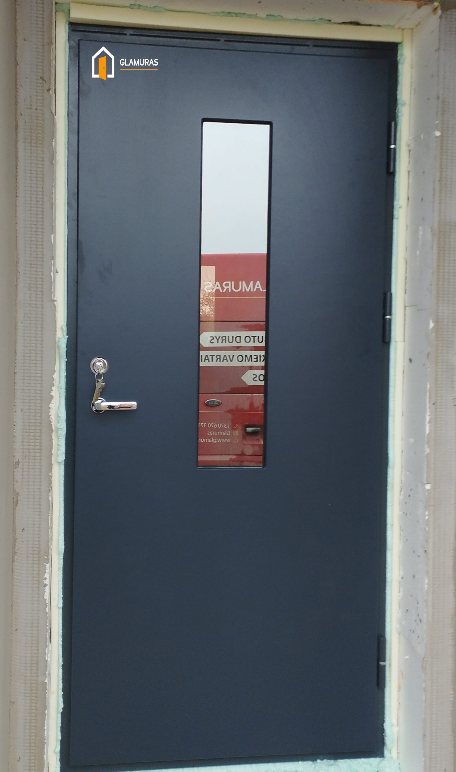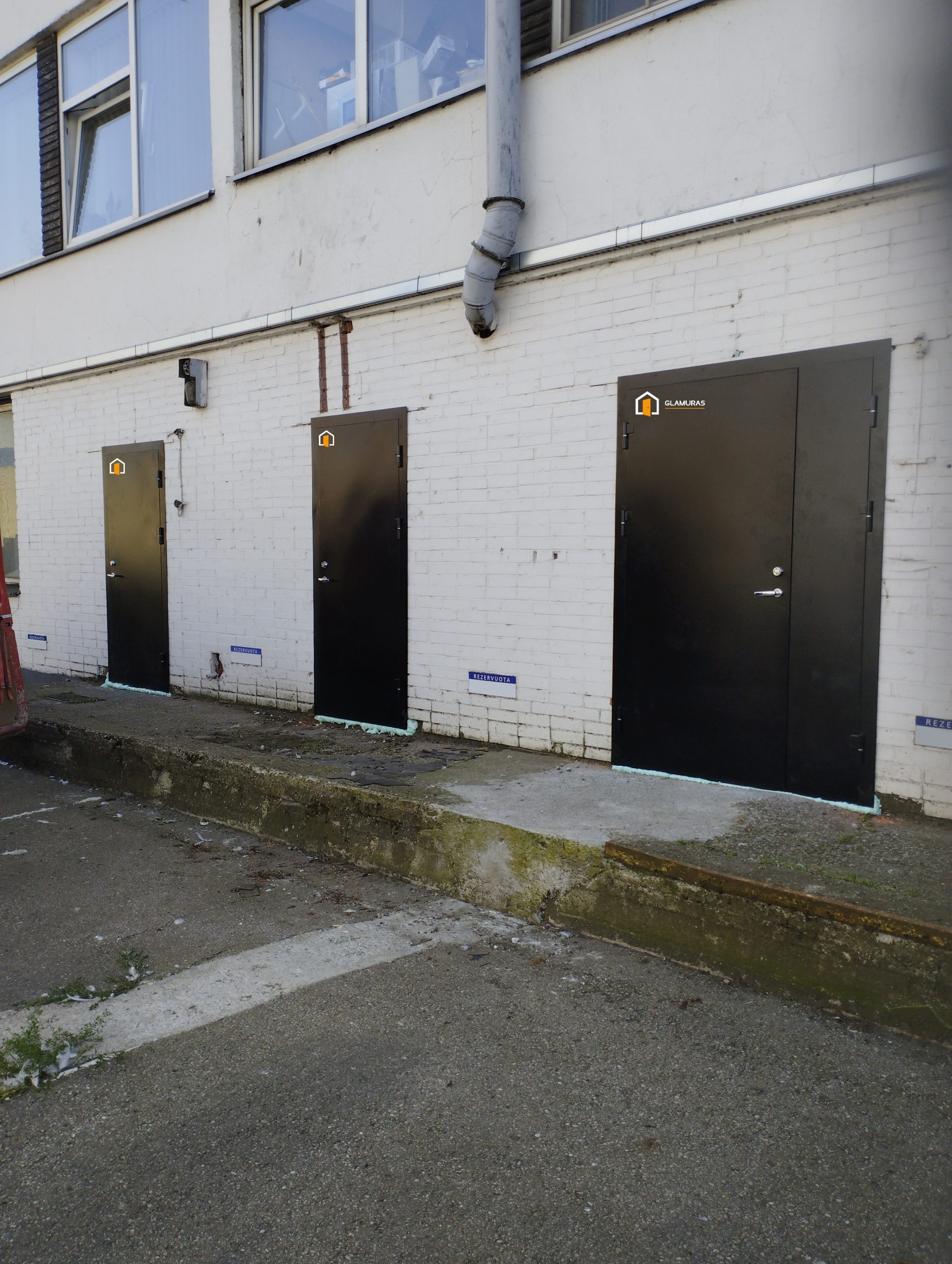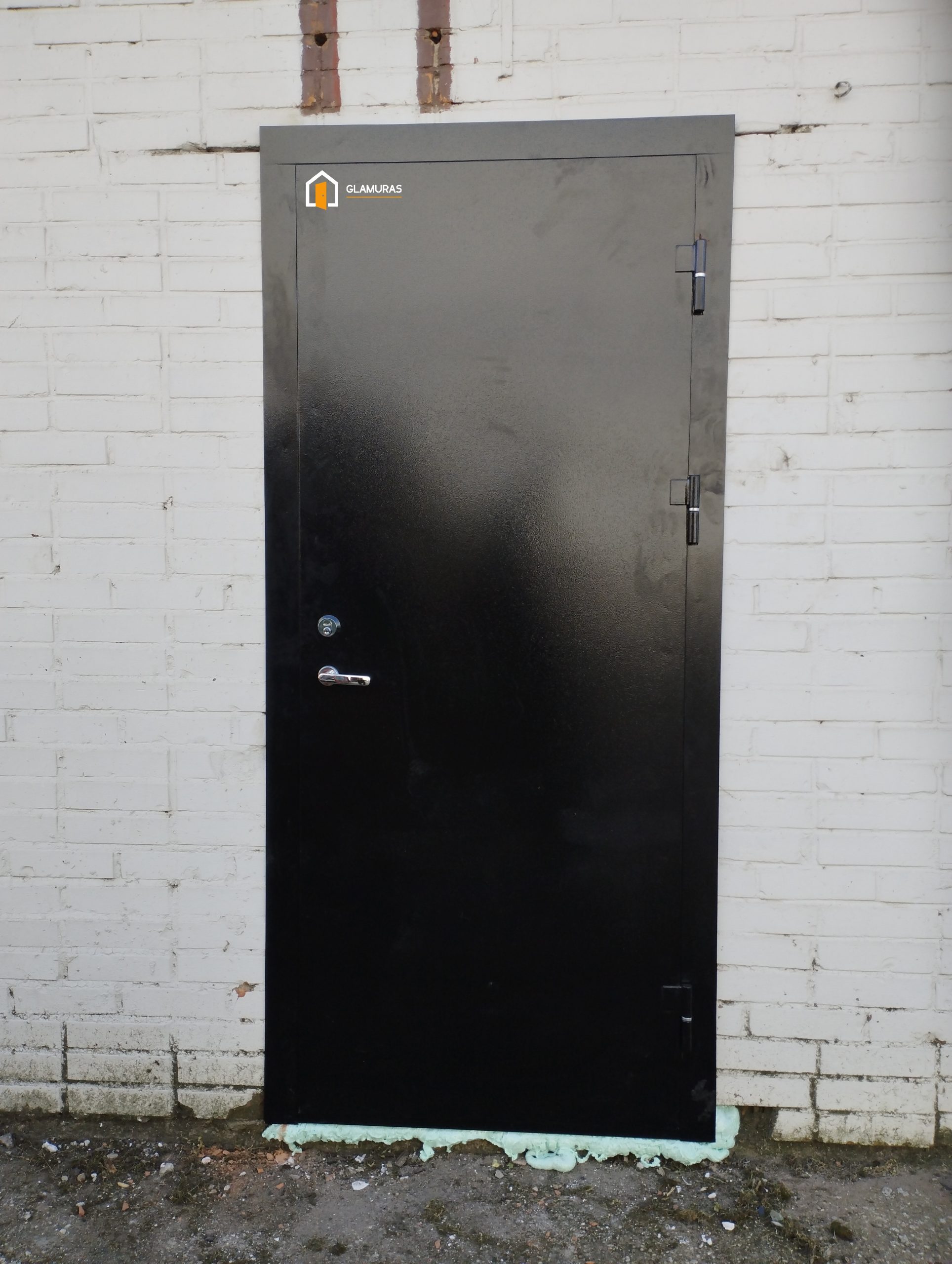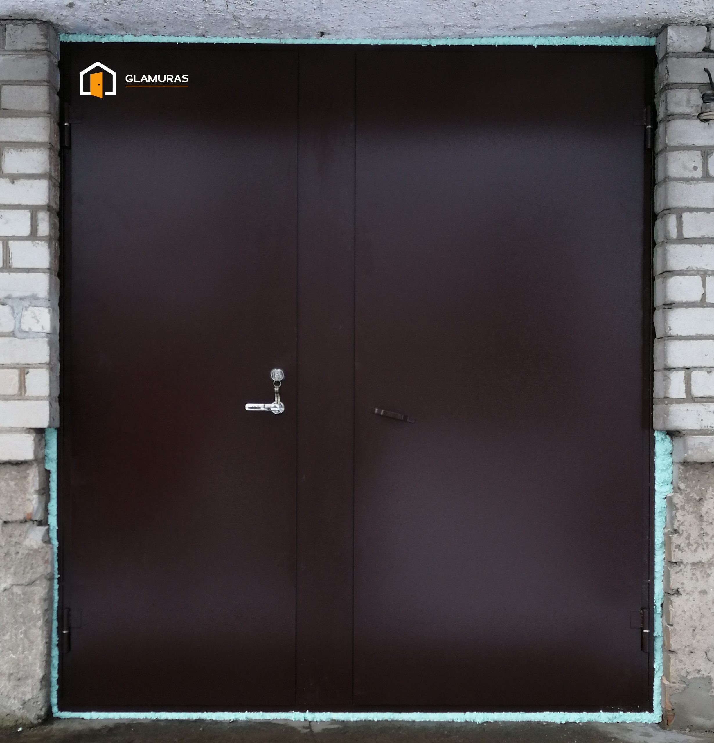 - Metalinės durys – tvirtos, ilgaamžės, atsparios apkrovoms.